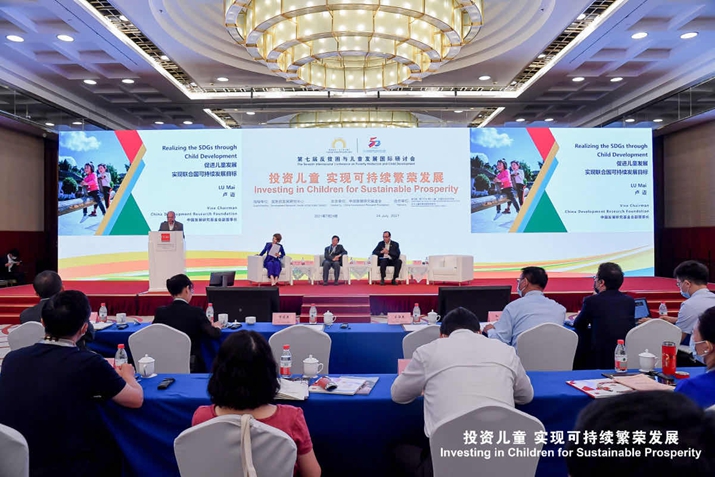 The Seventh International Conference on Poverty Reduction and Child Development is held in Beijing on July 24 (COURTESY PHOTO) "However, we also need to look after these children’s mental development," Lu said. A girl named Tingting, who hails from a village in Bijie, Guizhou Province, has barely ever witnessed the faintest of smiles on the faces of her family members as many of them deal with disabilities, either physically or mentally. This led to Tingting's slow development in many aspects, even in terms of language skills. A program launched by the CDRF ensured she received no fewer than 120 home guidance and training sessions. And today, she’s performing well in kindergarten. Lu added that the cost of these 120 home visits over a period of two years came to some 7,000 yuan ($1,083); but they changed the life of this little girl. By now, China has eradicated extreme poverty and the country is steering its national strategy from poverty alleviation to rural revitalization. Lu hopes that a special program can be designed to promote early childhood development in rural areas by, for example, ensuring every village has one kindergarten, and the attending children receive nutritious meals. "I hope all related sectors can sit down together to discuss this issue as we still have a long way to go when it comes to child development," Lu added. Copyedited by Elsbeth van Paridon Comments to taoxing@bjreview.com |