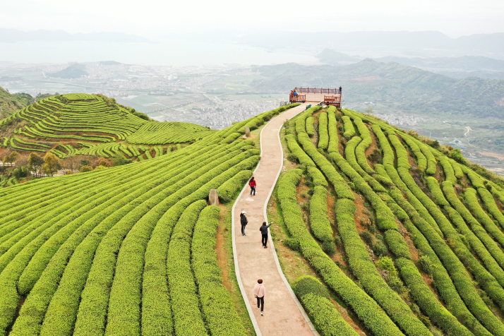 ![]() Tourists visit a tea garden in Lianjiang County, Fujian Province, on March 28 (XINHUA)