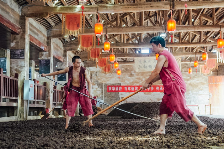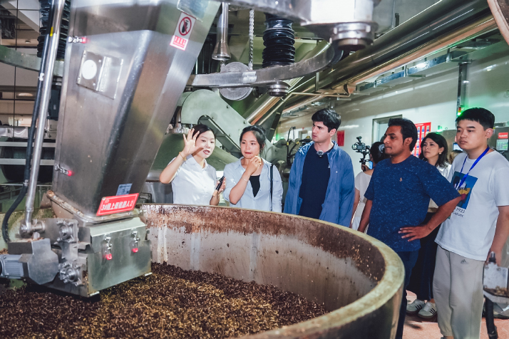 Barefoot and dressed in a traditional Chinese vest, 26-year-old Yuan Teng moved across Jinghua Distillery's workshop floor in Maotai Town, Guizhou Province, on July 17. Rake in hand, he spread freshly steamed qu, the fermentation starter for China's famed sauce-flavor baijiu ("clear alcohol"), into even layers. Around him, five other workers mirrored his movements in the sweltering July heat. To honor centuries-old traditions and nurture the delicate microbial ecosystems crucial to fermentation, the distillery forbids modern comforts like air conditioning. At the room's center, two growing mounds of qu—one large, one small—awaited the freshly laid batches that will join them once cooled to perfection. This workshop stands as a preserved relic of China's distilling heritage. After Jinghua acquired the former state-owned facility in 2013, the distillery kept its soul intact: walls bearing original stains, exposed triangular roof beams and red lanterns dangling gently from the rafters. On July 17, the workshop welcomed diplomats and global youth visiting as part of Guizhou's China's Development: An Opportunity for a Colorful World International Exchange Week. Some guests even took up rakes to experience the ancient brewing process firsthand. The event, launched two days earlier in the city of Zunyi, invited participants to explore Guizhou's signature industries—including the brewing of sauce-flavor baijiu. Speaking at the opening ceremony,Du Zhanyuan, President of China International Communications Group, one of the organizers of the event, emphasized, "We hope diplomats and global youth will explore Zunyi extensively during this visit—witnessing firsthand the vigorous development of local specialty industries, sensing the vitality of Chinese modernization, and jointly discovering paths toward exchange, mutual learning and win-win cooperation." ![]() The workshop of Jinghua Distillery in Maotai on July 17 (COURTESY PHOTO)