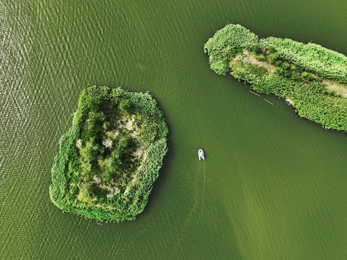 ![]() An aerial drone photo taken on June 5 shows volunteers taking a boat to inspect the breeding habitat of migrant birds at a wetland on the estuary of the Baisha River in Qingdao City, east China's Shandong Province (XINHUA)