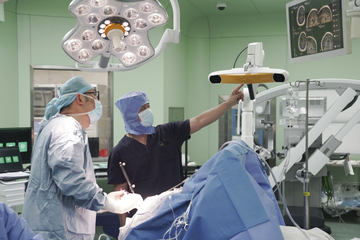 ![]() Professors from Huashan Hospital affiliated with Fudan University in Shanghai perform brain-computer interface operation on the first clinical trial patient on March 25 (XINHUA)