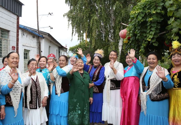 ![]() Residents of Hongdun Town in Altay Prefecture, Xinjiang, pose for a photo on September 9. Hongdun is home to 11 ethnic groups, with the ethnic minorities making up 51 percent of the town's population (XINHUA)