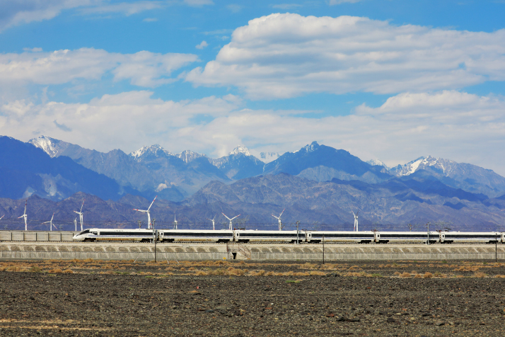 23.302 million tons Food output in 2024, ranking 13th nationwide. Xinjiang's food output surpassed 5 million tons in 1986, 10 million tons in 2009 and 20 million tons in 2023. For statistical purposes in China, "food" refers to grains, beans, potatoes and sweet potatoes 14.17 million tons The amount of food transferred from Xinjiang to other parts of China from 2022 to 2024. Xinjiang is one of the seven provincial-level regions in China that is a net producer of food 5.686 million tons Cotton output in 2024, accounted for 92.2 percent of the national total, up from 2.9175 million tons in 2010 and 5,000 tons in 1949 32.958 million tons Crude oil output in 2024, up from 23.9373 million tons in 2005 and 32,900 tons in 1955 42.268 billion cubic meters Natural gas output in 2024, up from 10.624 billion cubic meters in 2005 and 8.8 million cubic meters in 1955 77 years Average life expectancy in 2024, up from 60 years in 1985 and 30 years in 1949 when the People's Republic of China was founded 230,000 km Total length of highways in operation in 2024, up from 23,800 km in 1978 and 3,400 km in 1949 6.6792 million Number of registered civilian vehicles in 2024, up from 2.1107 million in 2012 and 41,600 in 1978 28 Number of civil airports in operation, up from 17 in 2012 and one in 1949 ![]() A high-speed train travels past wind turbines in Urumqi in June 2021 (XINHUA)