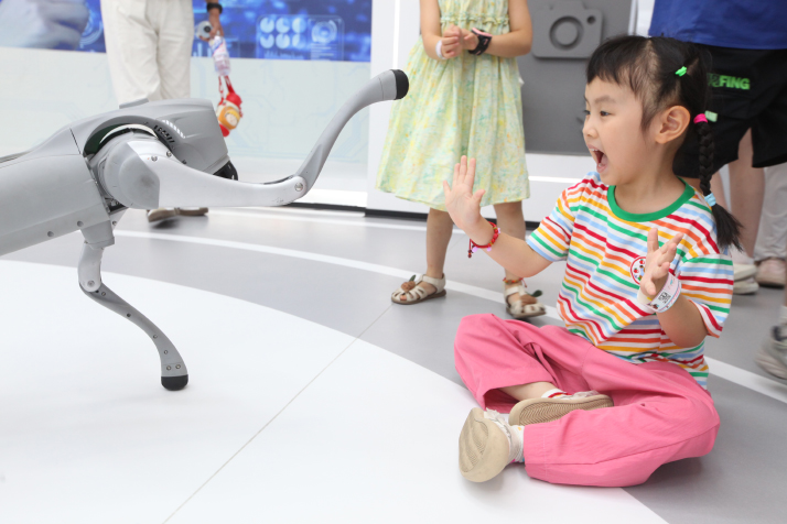 ![]() A child interacts with a robotic dog at a science museum in Xuzhou, Jiangsu Province, on September 7 (XINHUA)