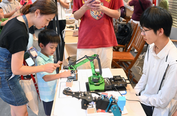 Wang Yimei, a resident of Haikou, Hainan Province, drove two hours to Danzhou, another city in the province, so her child could take part in the 2025 Hainan Province National Science Popularization Month activities on September 6. "Building race car and rocket models with the teacher, we were very excited to learn about the scientific principles behind them. We'll come again next time there's an event like this," Wang told Hainan Daily newspaper. After the inaugural National Science Popularization Month in China started on September 1, Hainan launched an impressive 765 activities across the province, to spark public curiosity and boost scientific literacy. The Danzhou event showcased cutting-edge technologies, including an AI chess robot, which was a highlight. "Who will win in a game of chess between humans and robots?" Curious visitors watched as students sat at the chessboard, challenging the robot one after another. "This robot has mastered more than 1,000 chess strategies, allowing it to quickly find the optimal move," event staff member Zou Guansheng told Hainan Daily. Nearby, a robotic drummer captivated audiences. After a song was selected, the robot got into action, wielding drumsticks with precise, stable and powerful rhythms, while children danced to the music. "Relying on advanced algorithms, the robot has a 'super brain' capable of accurately analyzing musical scores and synchronizing movements of its head, hands and feet with precision. It can drum as fast as eight beats per second," another staff member said. These novel technological experiences sparked visitor Zhang Wen's strong interest in technology. With AI integrated into all aspects of life and work, "only by continuously learning and keeping pace with technological development can we create more innovative achievements and make life better," she told Hainan Daily. ![]() Visitors examine a miniature robotic arm at a community exhibition in Shanghai during the National Science Popularization Month on September 13 (XINHUA)