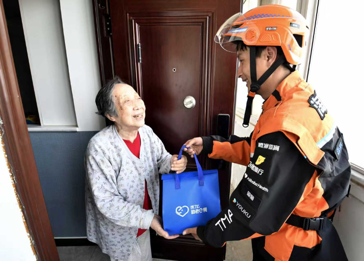 ![]() A delivery rider delivers a meal to a senior citizen living alone in Beijing on September 26 (XINHUA)