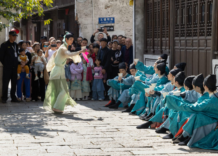 ![]() Performers transform the Xinshi Ancient Town in Deqing County, Zhejiang Province, into a stage on October 25, offering audiences a unique immersive experience (XINHUA)