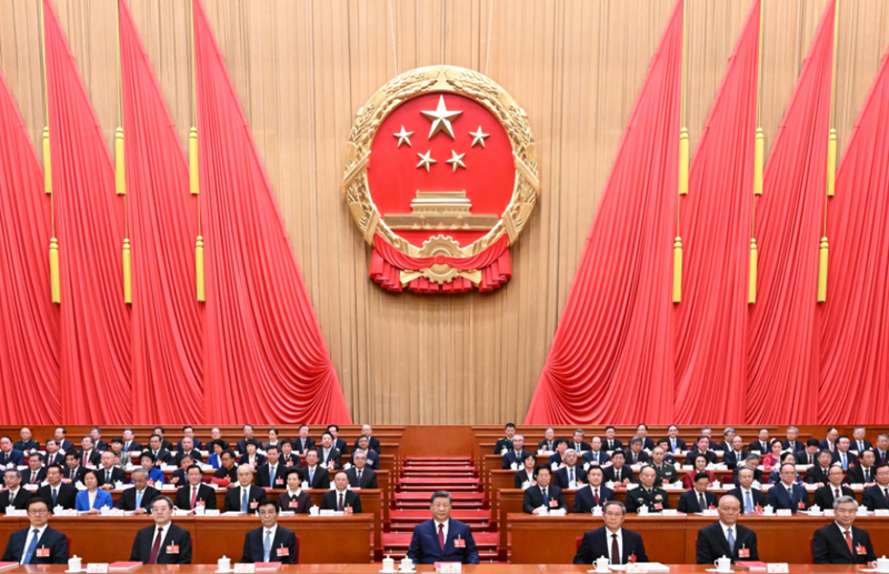 The 14th National People's Congress (NPC) holds the closing meeting of its fourth session at the Great Hall of the People in Beijing, capital of China, March 12, 2026. Chinese President Xi Jinping and other leaders including Li Qiang, Wang Huning, Cai Qi, Ding Xuexiang, Li Xi and Han Zheng attended the meeting. (XINHUA) The 14th National People's Congress (NPC), China's national legislature, concluded its fourth session on March 12. Chinese President Xi Jinping and other leaders including Li Qiang, Wang Huning, Cai Qi, Ding Xuexiang, Li Xi and Han Zheng attended the closing meeting of the session at the Great Hall of the People in Beijing. Zhao Leji, executive chairperson of the session's presidium, presided over the meeting attended by 2,762 NPC deputies. Lawmakers approved the government work report and the outline of the 15th Five-Year Plan (2026-2030) for national economic and social development. They passed the Ecological and Environmental Code, the Ethnic Unity and Progress Promotion Law and the National Development Planning Law. Xi signed presidential orders to promulgate the laws. Lawmakers approved a report on the implementation of the 2025 plan for national economic and social development and on the 2026 draft plan, and approved the 2026 plan. They approved a report on the execution of the central and local budgets for 2025 and on the draft central and local budgets for 2026, and approved the central budget for 2026. Lawmakers approved the work reports of the NPC Standing Committee, the Supreme People's Court and the Supreme People's Procuratorate. They also adopted a decision on approving the report of the NPC Standing Committee on the work of the overhaul of laws and the proposed handling of certain laws and decisions. Xi signed a presidential order concerning the decision. Addressing the meeting, Zhao said that the annual session has completed its agenda. He noted that the 15th Five-Year Plan period is a crucial stage for reinforcing the foundations and pushing ahead on all fronts toward basically realizing socialist modernization by 2035, and that the effective implementation of the plan is of great significance. Zhao stressed the need to stay focused on managing the country's own affairs well and strive for a strong start to the 15th Five-Year Plan period. He added that the people's congresses should fulfill their duties and provide the legal guarantee for achieving the goals and tasks of the 15th Five-Year Plan. A meeting of the session's presidium, presided over by Zhao, was held before the closing meeting. Zhao, who is also chairman of the NPC Standing Committee, presided over a meeting of the executive chairpersons before the presidium meeting. |