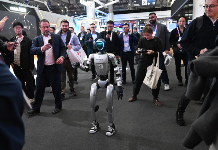 ![]() A humanoid robot walks through the exhibition hall at the Mobile World Congress in Barcelona, Spain, on March 2 (XINHUA)