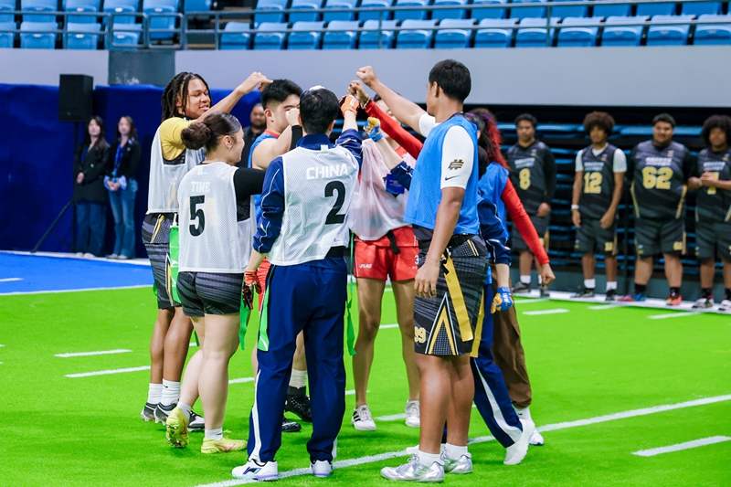 Flag football players from China and the U.S. play a friendship match during an event marking the 55th anniversary of Ping-Pong Diplomacy in Beijing on April 10 (COURTESY PHOTO)
