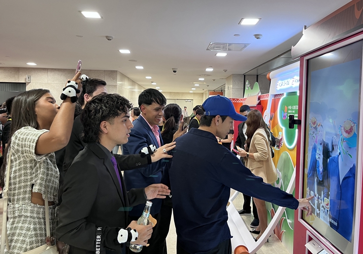 ![]() Influencers from Latin American and Caribbean countries try out an interactive exhibit at a cultural interaction bazaar in Beijing on September 8(TAO XING)