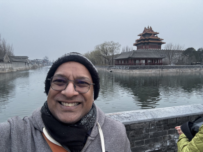 ![]() The author poses for a photo near the Palace Museum during a visit to Beijing in March (COURTESY PHOTO)