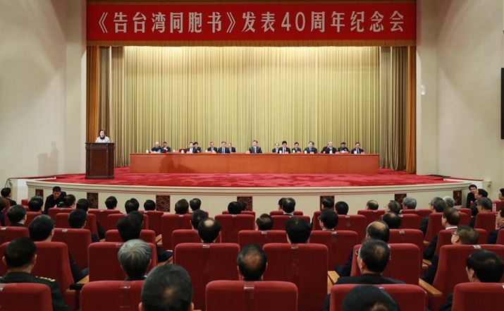 A gathering to commemorate the 40th anniversary of issuing Message to Compatriots in Taiwan is held at the Great Hall of the People in Beijing, capital of China, January 2 (XINHUA) Irresistible trend "'Taiwan independence' goes against the trend of history and will lead to a dead end," Xi said. The president said achieving the country's greatness, national rejuvenation and cross-Strait reunification is the trend of history, which can never be blocked by anyone or any force. The peaceful and stable development of cross-Strait situations and the progress of cross-Strait relations are the tide of the time that can never be stopped by anyone or any force, he said. Liu Jieyi, head of the State Council Taiwan Affairs Office, noted the strengthened political, economic, cultural, personnel exchanges over the decades. Between 1988 and 2018, 134 million cross-Strait visits were logged; two-way trade reached $2.6 trillion; and the mainland has been Taiwan's largest market and top investment destination outside the island, Liu said. In his speech, Xi said the future of Taiwan lies in national reunification. "We sincerely hope all the compatriots in Taiwan treasure peace as much as they treasure their own eyes, and pursue national reunification as much as they pursue happiness." No interference from outside Xi said the Taiwan question is China's internal affair and allows no external interference. The Chinese people's affairs should be decided by the Chinese people, Xi said, stressing that the Taiwan question concerns China's core interests and the national bond of the Chinese people. China's reunification does not harm any country's legitimate interests, including their economic interests in Taiwan, Xi said, adding that it will only bring more development opportunities to other countries. Over the 70 years, more and more countries and peoples have understood and supported China's cause of reunification, the president noted. The gathering on January 2 was attended by Li Zhanshu, a member of the Standing Committee of the Political Bureau of the CPC Central Committee and chairman of the National People's Congress Standing Committee. Wang Yang, a member of the Standing Committee of the Political Bureau of the CPC Central Committee and chairman of the National Committee of the Chinese People's Political Consultative Conference, presided over the event. Wang said Xi's speech demonstrated the historical trend of cross-Strait relations and called for joint efforts to forge ahead for the peaceful national reunification. Chen Ching-lung, a 54-year-old hotel operator in Xiamen, Fujian Province, followed Xi's speech, which was broadcast live by China Media Group and on Xinhua News Agency's website (xinhuanet.com). A veteran who was once stationed in Kinmen, Chen joined the influx of Taiwan compatriots who found bristle business chances on the mainland. "The direction of peaceful development is totally correct," he said. "What the two sides should do is to mitigate differences and enhance their communications." Hsueh Ching-te, another Taiwan compatriot who runs a business in Fujian, said he looks forward to complete reunification so that "all Chinese people will live in peace, prosperity and with dignity." |