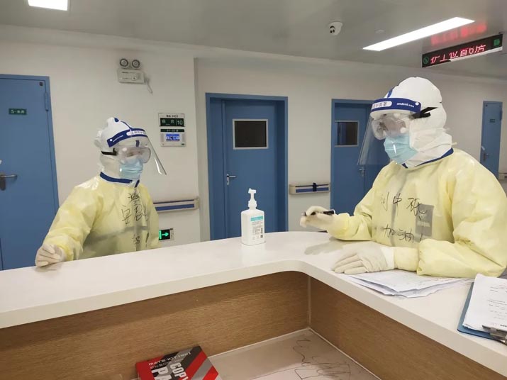 On January 26, the first medical team of Peking University People's hospital rushed to Wuhan and participated in the treatment of patients contracted COVID-19. I happened to be on duty at the hospital on that day, and I saw my brave colleagues off as they were preparing to stand on the front line in Wuhan to fight against the epidemic. Their determination and bravery made my heart flutter, and then I decided to join the battle when I was informed on February 2 that another batch of medical teams would be formed soon. My wife took initiatives to help me pack luggage and bought disposable items that might be useful. On February 6, I received a phone call from the hospital, "This is a formal announcement from the hospital. You will set off tomorrow. Please gather at the hospital at 7 a.m. and remember to gather up your belongings tonight." It was 5 o'clock in the morning by the time I left my house. The weather outside was cold and dark when I embarked on my way to the hospital. On the morning of February 7, 110 members from the third batch of medical teams quickly assembled. Prior to our departure, Jiang Baoguo, president of the Peking University People's Hospital, boosted everyone's morale with rousing remarks. "Members and fighters! Today, we will be going to Wuhan to fight against the epidemic! We must win and make sound contributions to our people! Are you ready?" The unanimous response "Yes!" from doctors and nurses was the loudest cheer I have ever heard in my entire life. On the way to the airport, I received countless messages from colleagues and friends. Messages like "Take care, bro!", "Wishing you come back safe! ", and "Please protect yourself!” were crowding up my WeChat. They were being extremely supportive and I was, for once in my life, so strongly brimming with ambition, strength and power. As I was looking down at the sea of clouds below me from the plane, I thought of my father. When the severe acute respiratory syndrome (SARS) broke out in China in 2003, my father, as the head of his department, rushed to the front line on the first notice and took charge of the imageological diagnosis of patients. I remembered witnessing this when I was 13, and thus hoping to become someone like him, a white-clad warrior who saved the lives of many. My father had passed away before he could see me dress in the same white gown he once did. But it did not matter, because I had never felt so close to him as I did then. I was determined to do my father proud, and more than ready for the long-awaited battle ahead. At 3 o 'clock in the afternoon, we arrived in Wuhan. Walking out of the eerily quiet airport lobby, I was greeted by a piercing wind. It was the first time that I had ever been to Wuhan, and it was also the first time that I had felt such bitter, chilly air. On the way to the hotel, there were no other cars or people on the street. Through the windows of the residential buildings we passed by, not a single moving figure was found. The whole city seemed to have stopped living. It was hard to imagine the once bustling metropolis had turned into a lifeless ghost town in such a brief amount of time. Everyone felt nervous in the overwhelming ominous atmosphere. After arriving at the hotel, our whole team immediately received emergency training. We were introduced with details regarding the conditions of the medical wards and given updated information about the patients. We also received training on personal protection and precautions. Before I went to bed at night, I opened the window for ventilation. The air was damp and chilly. I was shuddering as the bitter wind pierced though my skin. Medical workers receive specialized training in Wuhan The battle begins On the next day, our team visited the newly established ICU at the Tongji Hospital. When we arrived, the team leader and the hospital support staff were still busy making final adjustments to the medical equipment and the information system. Immediately, everyone on the team was busy with their respective tasks: doctors were managing the medical record system, while nurses were busy inspecting medical instruments and checking the drugs. We were all busy carrying out our duties to prepare for the impending battle ahead. It took only 24 hours for the ICU to be fully prepared for incoming patients! Around 10 p.m., the first incoming stream of patients started arriving at the ICU, signaling the beginning of our battle. I recall entering the changing room prior to their arrival and having to wear protective clothing, gloves, shoe covers, goggles and face shields. Everyone on our team made sure to check up on each other for any misplacement or gaps in our safety equipment. Once having put on the entire outfit, immediate discomfort started to arise from every part of my body: the sealed glasses were placed tightly around my eyes, creating impaired vision due to the foggy lenses; the tightly fit goggles exerted unbearable pain and pressure on the bridge of my nose; my hands were tightly bound by five layers of gloves, making it difficult to even extend or flex my wrists; and it was hard to breathe through normally when wearing the airtight masks. It became evident to us all that the following days at the hospital would be challenging. In order to enter the contaminated zone, we had to go through four buffer zones and five protective doors. For safety, the team members made sure we entered the ward in separate groups at once. The first door, the second, the third, the fourth, and the fifth. Tension was building up with every door that was opened in front of us. When the last door was closed behind us, I stood for a few seconds attempting to breathe calmly, and meticulously scanned the scene in front of me, looking for patients that were in an urgent need of treatment. More and more patients started to cram up outside of our unit as our shift progressed. Patients who were diagnosed and have already registered were directed to different wa