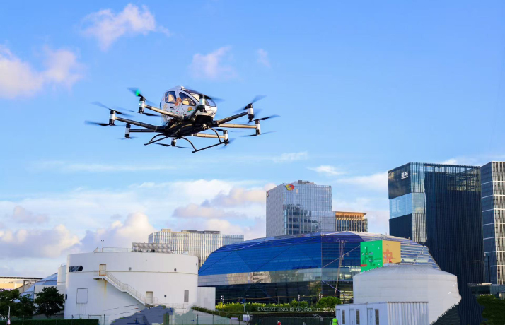 ![]() An electric vertical takeoff and landing aircraft flies over Shanghai on July 23, 2025 (XINHUA)