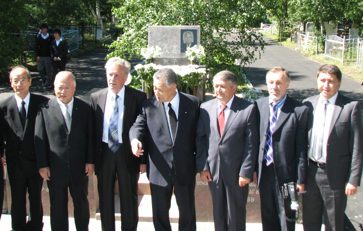 ![]() In 2010, former Japanese Prime Minister Yoshiro Mori (center), together with members of the Russia-Japan Friendship Society, visits the grave of his father Shigeki Mori in the city of Shelekhov, 20 km from Irkutsk, Russia, where a portion of his ashes is interred (VLADIMIR BEREZHNYKH)