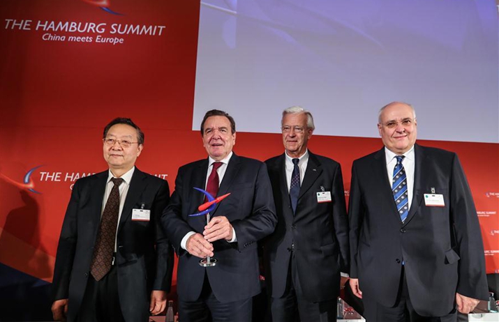 Honorary Chairman of the Hamburg Summit and former German Chancellor Gerhard Schroeder (second left) and Li Yizhong (first left), chairman of China Federation of Industrial Economics, pose for a photograph after the awarding ceremony of the China-Europe Friendship Award during the seventh Hamburg Summit in Hamburg, northern Germany, on November 23, 2016 (XINHUA) The seventh Hamburg Summit "China Meets Europe" opened in Hamberg, north Germany, drawing senior officials, entrepreneurs and leading scholars from China and the European Union (EU) to discuss the most important issues in Sino-European economic relations. About 550 participants from China and Europe gathered at the Hamburg Chamber of Commerce on November 23 to exchange views through 10 panel discussions and keynote speeches. Former German Chancellor Gerhard Schroeder said in his opening speech that China was of special importance to Germany as well as to the whole of Europe, adding that China and Germany had built a very successful partnership in the last four decades. He said Germany continued to be China's most important partner in Europe, with Germany opting for political cooperation with China over recent decades. "Cooperation, rather than confrontation, should characterize the relationships between countries, even when their political and economic systems differ," said Schroeder, who was made honorary chairman of the conference this year and received the China-Europe Friendship Award on November 23 in recognition of his outstanding achievements in cultivating relations with China. In today's world, there is no country that can master all these new challenges alone, he noted. "This is why we must intensify the strategic partnership with China in all areas, in politics and culture, as well as in the economy and civil society." In his speech, Fritz Horst Melsheimer, president of the Hamburg Chamber of Commerce, called for an investment treaty between the EU and China as soon as possible within the next year in order to put bilateral economic relations swiftly onto a more solid legal basis. "China has to master a tremendous economic transformation to make this growth more sustainable," he said, "at the same time, economic stagnation in many European countries and Britain's vote for Brexit both shake and shape our bilateral economic relations." Exchange and open discussions were therefore particularly important, he added. Despite sluggish global economic recovery and deep adjustment, China-EU economic and trade relations have deepened through concerted efforts by both sides, said Li Yizhong, chairman of China Federation of Industrial Economics in his opening speech. Li said, as the two pillars of the global economy, China-EU cooperation has a solid foundation and great potential to bring out the best in each other. Against the backdrop of global trade downturn, Europe sees service trade as an important driving force to economic growth in the post-crisis era, said Zhao Zhongyi, executive vice president of China Association of Trade in Services (CATIS), adding that as the most important trade partner to each other, China and Europe have great cooperation potential in service trade. The summit, which is scheduled for Nov. 23 and 24 this year, will deliver discussions, keynote speeches and panel meetings focusing on various topics, such as the fallout from Brexit, China's economic transition, the Belt and Road Initiative, and boosting efficiency in industrial manufacturing. Initiated by the Hamburg Chamber of Commerce in 2004, the biennial summit serves as an important platform for discussing China-EU economic cooperation. (Xinhua News Agency November 23, 2016) |