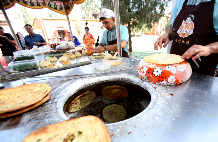 ![]() Villagers bake naan in Yingjisha (Yengisar) County, Kashi Prefecture, on September 11 (XINHUA)