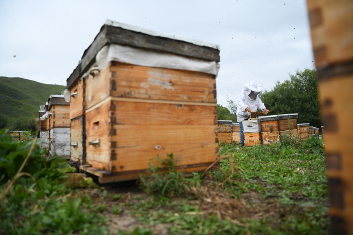 Drought-tolerant chickpeas have awakened Nileke's arid fields, black bees work industriously among the seas of flowers, and salmon that swim in the county's cold waters have found their way to dinner tables nationwide. This new abundance of produce and source of local livelihoods is the result of Nileke's efforts to drive rural revitalization. Gold from dry land Under the blazing sun in July, Subutai Township in Nileke County was carpeted with a rolling sea of golden yellow. A 2-hectare chickpea test field there carried a special mission. Although chickpeas are naturally drought-tolerant and hardy in poor soils, achieving high and stable yields in Nileke has been no easy feat. The crop may look rugged, but in fact it is delicate, and most varieties of the chickpea family struggle to adapt to the particular climate in the Ili River Valley. "The test planting was very successful!" said Luo Zhijun, General Manager of Ili Jiuxin Green Agriculture Development Co. Ltd., which is running the field test. According to Luo, after carefully screening more than 30 varieties, three high‑quality chickpea varieties were found to excel in the local environment. Through coordination with Xinjiang Academy of Agricultural Sciences, modern agricultural technologies have been introduced to increase efficiency, and net profits from growing the chickpeas in Nileke can exceed 4,500 yuan ($632) per hectare. The most immediate beneficiaries from the introduction of chickpeas are local farmers. Village resident Musal Jelil now has a job close to home. "I can now earn about 140 yuan ($19) a day here, while taking care of my elders and my cattle and sheep. It's very convenient," he said. ![]() Wang Huiqin inspects hives on her farm in Nileke (VCG)