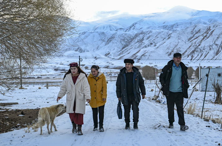 ![]() Duolaitiman Kaimike (second right), a village leader and National People's Congress deputy, chats with fellow villagers in Tashikuergan (Taxkorgan or Tashkurgan) Tajik Autonomous County, Kashi Prefecture, on January 3 (XINHUA)