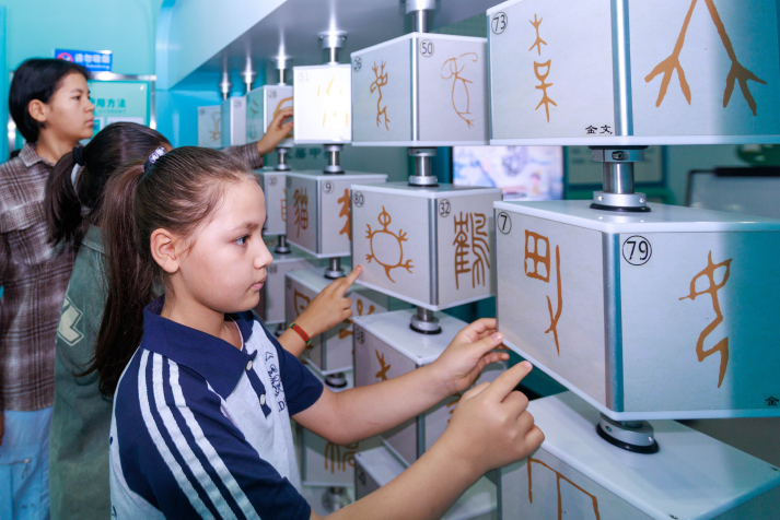 ![]() Children learn about the oracle bone script, the earliest form of writing in China, at a museum in Urumqi in August (VCG)