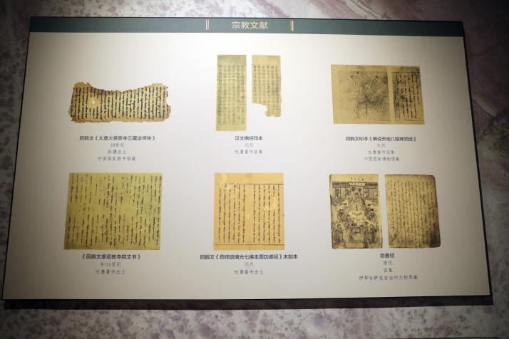 In August 2023, the Xinjiang Museum in Urumqi hosted an archaeological exhibition titled Chinese Historical Records: Exhibition of Documents Unearthed in Xinjiang. Organized into four thematic sections—bamboo and silk manuscripts, paper documents, stele inscriptions and epitaphs, and research and conservation—the exhibition brought together 150 artifacts or artifact sets. These materials included legal codes from ancient oasis kingdoms, economic contracts, personal correspondence and Buddhist manuscripts, most unearthed from the ruins of Loulan in Ruoqiang County, Hetian (Hotan) Prefecture and Turpan City. Xinjiang's arid climate and protective desert environment enabled these fragile documents to survive in exceptional condition for more than 1,000 years. Spanning from the Han Dynasty (206 B.C.-A.D. 220) to the Ming Dynasty (1368-1644), the artifacts vividly illustrate the long-standing coexistence of multiple languages and writing systems. Today, these materials are preserved at the Xinjiang Museum, where they serve as invaluable primary sources for understanding Xinjiang's history and cultural development. Archaeological research indicates that at least 25 languages and 18 ancient scripts were used throughout the region's history—a diversity closely linked to population movements, trade and the spread of religions along the Silk Road. Xinjiang served as a meeting point for Eastern and Western civilizations as well as a site where multiple Chinese linguistic and cultural traditions converged, reflecting the region's enduring history of multiethnic integration and development. ![]() Ancient religious documents written in different languages on display at the Chinese Historical Records: Exhibition of Documents Unearthed in Xinjiang exhibition at the Xinjiang Museum in Urumqi in August 2023 (VCG)
