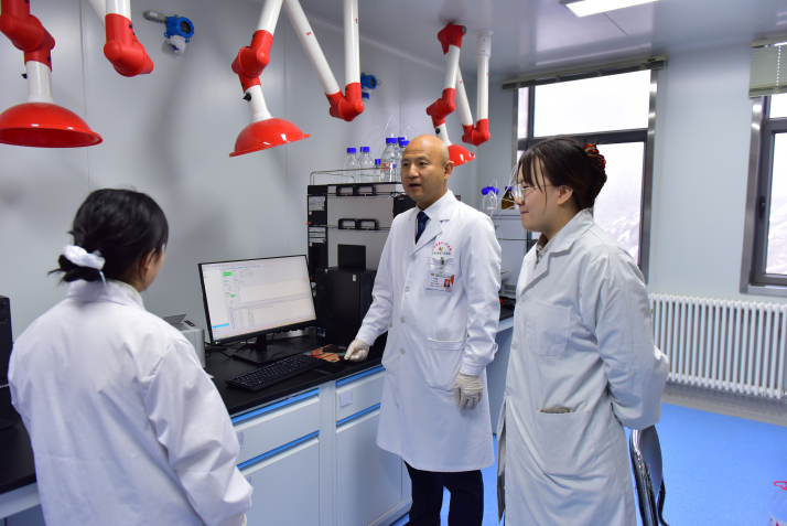 ![]() Li Zhijian (center), Vice President of Xinjiang Uygur Autonomous Region Uygur Medicine Hospital, at Xinjiang's Key Laboratory of Evidence-based Research and Transformation of Hospital Preparations of TCM in Urumqi on December 12, 2025 (COURTESY PHOTO)