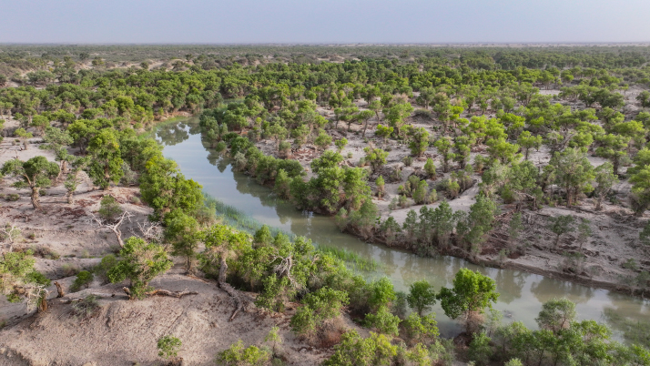 ![]() The Populus euphratica forest in Yuli County, Bayingolin Mongolian Autonomous Prefecture, on August 6, 2025. The Daxihaizi Reservoir, on the lower Tarim River, has reached 40 million cubic meters of water, enabling ecological water diversion (XINHUA)