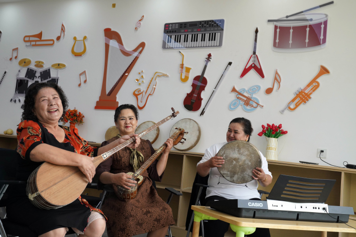 With the rhythmic tapping of hammer on mulberry wood, master craftsman Yiming Wushouer shapes the body of a dutar, a traditional two-stringed Uygur musical instrument, in a workshop in Tuowankewukusake, a village in Kashi (Kashgar) Prefecture in south Xinjiang. "I was born and raised in a village of musical instruments. Our village has a history of over 150 years of instrument making, and almost every household knows how to craft them," the 77-year-old said, gently stroking the nearly finished dutar in his hands. "In the past, we made instruments by hand at home and sold them in small quantities in the bazaar. Now, we work in a traditional instrument workshop. Some are bought directly by tourists, while others are ordered online. Our instruments are in high demand all across the country." The craft has transformed from a fading family tradition into a vibrant and sustainable industry that not only supports local livelihoods but also preserves and promotes the rich cultural heritage of Xinjiang's different ethnic groups. Through instruments like the dutar, melodies that once echoed in family courtyards now reach broader audiences at national exhibitions and global markets, fostering cultural exchange and ensuring that these timeless traditions continue to resonate with future generations. ![]() A rehearsal in a community activity center in Kashi City, Kashi Prefecture, in September 2024 (XINHUA)