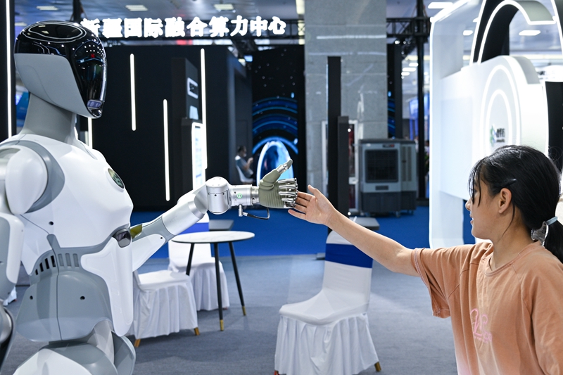 A visitor interacts with an intelligent robot at the 2025 (China) Eurasia Commodity and Trade Expo in Urumqi, Xinjiang on June 26, 2025 (XINHUA) Hi-tech empowerment "Computing power is the foundation of AI and it runs on energy," said Shi Gang, Vice Chairman of the Xinjiang Uygur Autonomous Regional Committee of the Chinese People’s Political Consultative Conference. Beyond its reliable energy supply, Shi said Xinjiang has another distinctive advantage for AI infrastructure: its climate. The region’s dry and cool conditions function as a natural and cost-free cooling system, reducing the energy consumption required for large-scale computing facilities. As a major region for energy production, agriculture and tourism, Xinjiang also offers a wide range of AI application scenarios and its geographic advantage further amplifies its technological potential, he added. Xinjiang has made comprehensive arrangements to advance AI development in the next five years. The strategy includes strengthening the foundational infrastructure for AI by exploring direct connections between green power and computing facilities, promoting the clustered development of green-powered computing centers, and integrating AI technologies into key industries and public services, Shi said. Modern agriculture Xinjiang’s grain output has continued to rise year after year, with its yield per unit area ranking first in the country for two consecutive years. At the same time, the region now produces more than 90 percent of China’s cotton. Xue Bin, Vice Chairman of the regional government, said in recent years, both the quantity and quality of Xinjiang’s agricultural products have improved. The region’s distinctive varieties of fruit have become widely recognized by consumers in China and abroad. Among them are Korla fragrant pears, apples from Aksu and grapes from Turpan. Meanwhile, specialty agricultural sectors are expanding. Xinjiang now accounts for more than 90 percent of China’s tomato-processing capacity, with output ranking first in Asia. Aquaculture has also grown steadily, with annual aquatic production exceeding 200,000 tons. Salmon raised in Xinjiang, in particular, have become a sought-after fresh product in both domestic and international markets. Looking ahead, Xinjiang will develop grain and food processing industry clusters and build a strong “western granary” for the country, Xue said.