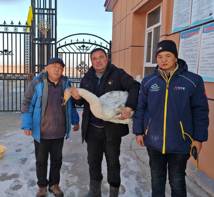 The digital catalyst Wu, who moved to Emin after retirement to look after his parents, began documenting the swans in late 2020. Using the pseudonym "Gang Pao," he posted videos almost daily, and then switched to livestreaming at the suggestion of his growing audience. He shared details of the swans' lives—their diets, travel patterns, and the environmental challenges they face. His audience expanded rapidly, reaching 70,000 followers. His videos have drawn many tourists to the riverbanks. Crucially, his broadcasts mobilized locals from diverse ethnic groups—Uygurs, Daurs, and Kazaks—to join the conservation work. In 2022, Emin began renovating its Riverside Park, a prominent, large public park, and Wu was a consultant for the newly designated swan ecological protection zone in the park. He suggested building artificial, hill-shaped feeding platforms in the river to ensure winter food access for the birds, and advised to discontinue the tradition of placing red lanterns by the river. He also suggested relocating the red riverbank sculptures as swans are sensitive to the color. In 2023, the Emin County People's Procuratorate established a swan patrol volunteer service team with Wu as the lead coordinator. The team is entrusted with round-the-clock patrols, emergency feeding, rescues, and educational outreach. ![]() Illyar Ily (middle) and two other volunteers with an injured swan at a rescue center in January 2024 (COURTESY PHOTO) An ecological classroom The commitment extends beyond the riverbanks. On the first workday of 2026, more than 40 primary school teachers and students visited Illyar Ily, a 55-year-old Uygur, at his home. The Swan Science Popularization Center operates from his courtyard. Opened in 2025, the center has a steady stream of visitors, who are given a deeper understanding of avian biology and their ecological responsibility. Illyar's neighborhood is home to 32 households across nine ethnic groups. Most of them raise pigeons and they use their pigeon-raising experience to protect the swans. "It's the same as raising pigeons," Illyar remarked. "The swans are very smart. If you treat them well, they trust you." In 2024, Illyar and others formed the Emin County Wildlife Protection Volunteer Service Team. They conduct regular patrols, clean up the Emin River, and educate the community. They have rescued over 40 injured swans, including one with a severe wing injury that had to be transported to a local rescue center for specialized care. Illyar, who previously spoke limited standard Chinese, now speaks it fluently, thanks to studying with his teammates to communicate more effectively during the educational talks. ![]() Swans swim in the Emin River in December 2025 (COURTESY PHOTO)