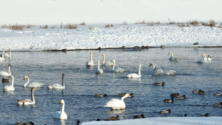 From stopover to permanent home Emin is a critical juncture on the West Asia-East Africa Flyway, one of the nine major bird flyways worldwide. Bird flyways are the routes migratory birds follow during their seasonal journeys between breeding and wintering grounds. In the past, each October, vast flocks passed through the county but did not stay as food was scarce, human activity caused disturbance, and the threat of stray dogs loomed large. Things began to change when residents started shooing away stray dogs, stopped photographers from disturbing the birds for better shots, and provided food and care for injured swans. The swans responded and began to linger. The local government recognized this opportunity and stepped in to organize dedicated volunteer teams and improve the ecosystem. As a result, the wintering swan population has risen from the initial two birds to over 180 today. ![]() Swans, mergansers and other migratory birds at the Riverside Park in Emin in December 2025 (FANG JINZHI)