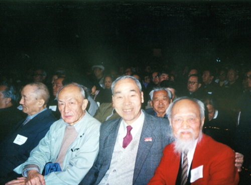 A MEETING OF GREAT MINDS: Xu Yuanchong (middle) and Zhu Guangya (second left), a renowned nuclear physicist, in Beijing in 1992 (PEKING UNIVERSITY LIBRARY)