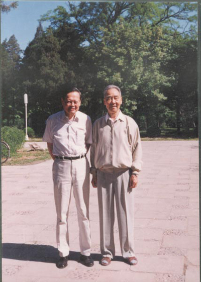 INTELLECTUAL ACQUAINTANCES: Xu Yuanchong (right) and his old friend Chen-ning Yang, Nobel laureate in physics in 1957, at Tsinghua University in Beijing in May 1997 (PEKING UNIVERSITY LIBRARY)