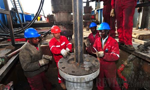 TECHNOLOGICAL ASSISTANCE: A Chinese worker helps install equipment for geothermal power generation in Kenya's Rift Valley Province on August 29 (ZHAO YINGQUAN) |